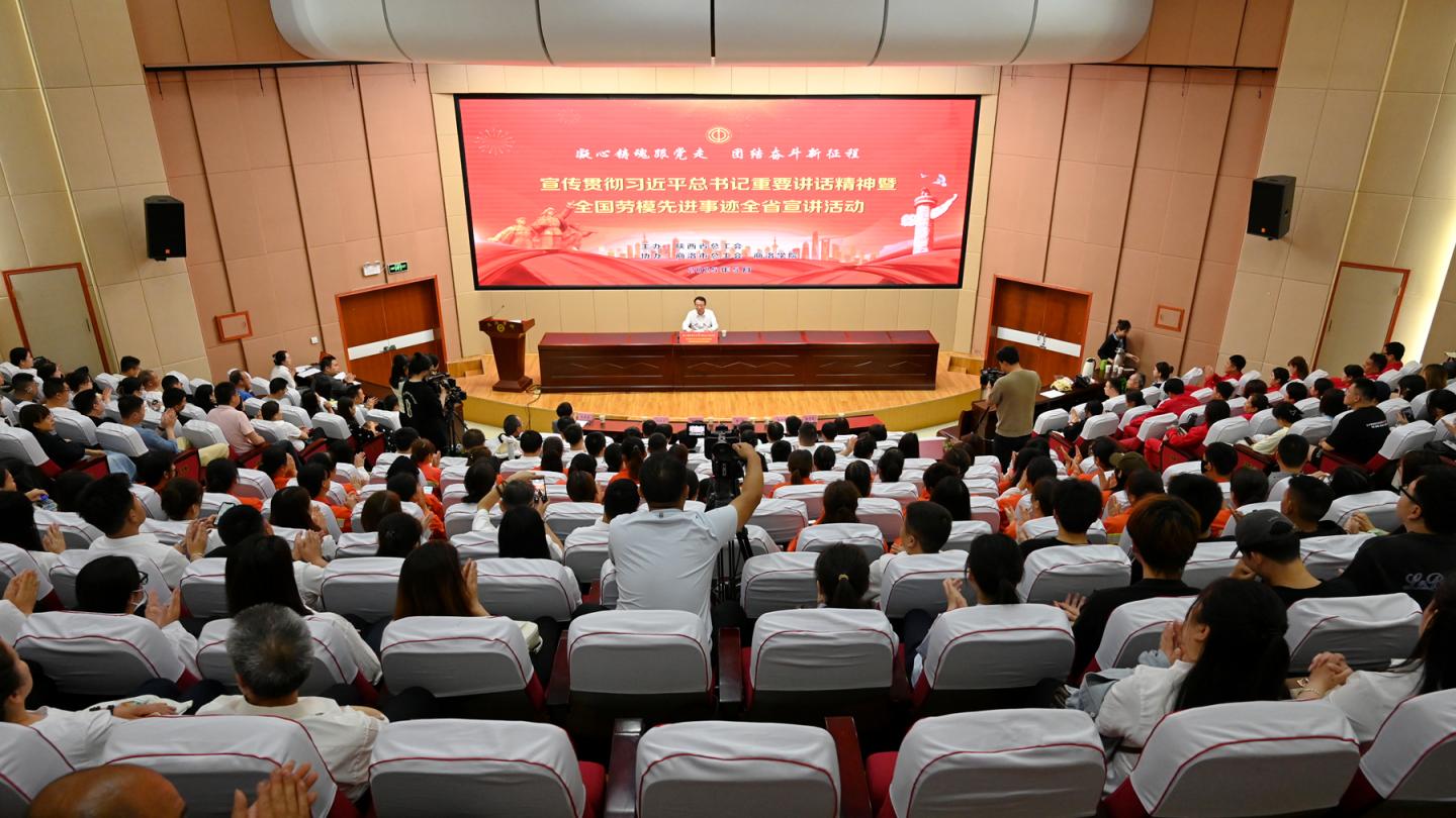 5月22日上午,由陜西省總工會主辦的“宣傳貫徹習近平總書記重要講話精神暨全國勞模先進事跡宣講活動”在我校舉行。陜西省總工會副主席、黨組成員王永崗,校黨委副書記劉寶盈出席活動。商洛市總工會黨組副書記、常務副主席阮景霞主持活動。王永崗傳達了習近平總書記在慶祝中華全國總工會成立100周年暨全國勞動模范和先進工作者表彰大會上的重要講話精神。他強調,習近平總書記的重要講話對工會組織以及新時代工運事業發展具有重...