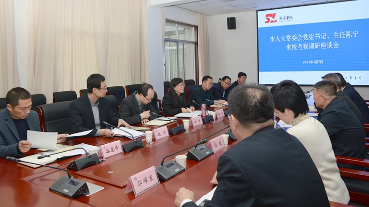 3月7日下午,商洛市人大常委會黨組書記、主任陳寧一行來我校考察調研,了解學校服務商洛“中國康養之都”建設工作情況。校黨委書記張志昌主持調研座談會。校長范新會、副校長王新軍參加座談會并陪同調研。