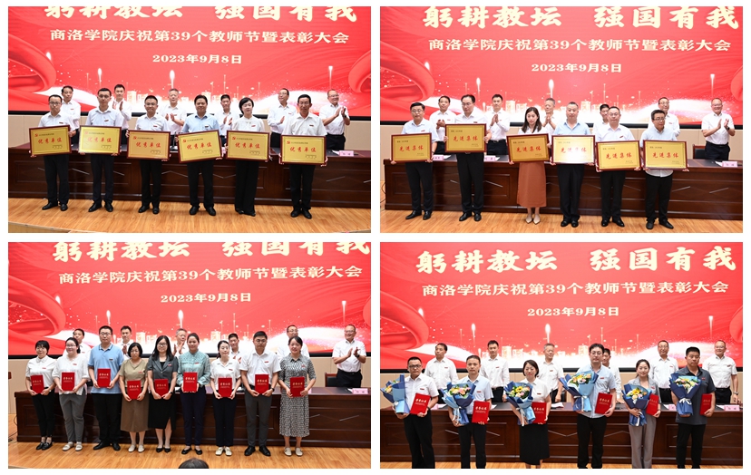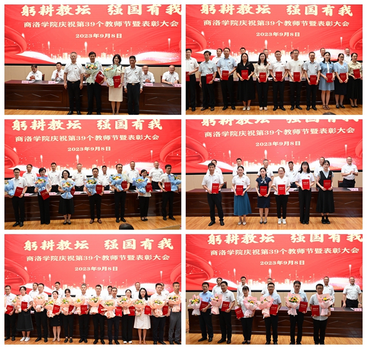 在熱烈的掌聲中,大會(huì)對(duì)我校榮獲2023年陜西省教書育人楷模、第十三屆陜西普通本科高等學(xué)校教學(xué)名師、商洛學(xué)院首屆黃大年式教師團(tuán)隊(duì)、2022年度全省教育系統(tǒng)先進(jìn)個(gè)人、學(xué)校目標(biāo)責(zé)任考核優(yōu)秀單位、2023年度先進(jìn)集體、優(yōu)秀教師、優(yōu)秀教育工作者、我最喜愛的老師以及在教學(xué)、科研和學(xué)生工作中取得突出業(yè)績(jī)的教師進(jìn)行了表彰。