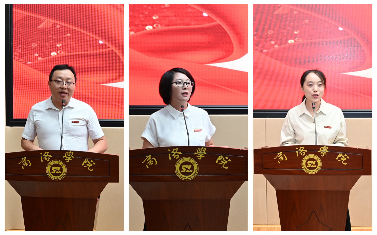 2023年先進(jìn)集體單位代表袁訓(xùn)鋒、科研工作突出業(yè)績(jī)代表喬成芳、教學(xué)工作突出業(yè)績(jī)代表房琳分別作了發(fā)言。他們一致表示,今后將始終以習(xí)近平新時(shí)代中國特色社會(huì)主義思想為指導(dǎo),堅(jiān)定“躬耕教壇,強(qiáng)國有我”的職業(yè)信念,踐行“四有”好老師標(biāo)準(zhǔn),將扎實(shí)的知識(shí)功底、過硬的教學(xué)能力、勤勉的教學(xué)態(tài)度、科學(xué)的教學(xué)方法作為自身的基本素質(zhì),不斷提升教育能力、科研能力、社會(huì)服務(wù)能力,為把商洛學(xué)院建設(shè)成為省內(nèi)、國內(nèi)一流應(yīng)用型本科院校而努力奮斗。