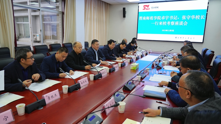 11月3日,渭南師范學(xué)院黨委書(shū)記卓宇、校長(zhǎng)張守華一行14人來(lái)我校考察交流工作。校黨委書(shū)記張志昌、校長(zhǎng)范新會(huì)熱情接待了卓宇、張守華一行。雙方圍繞學(xué)科專(zhuān)業(yè)建設(shè)、師資隊(duì)伍建設(shè)、服務(wù)地方等方面工作進(jìn)行了全面深入廣泛的交流。