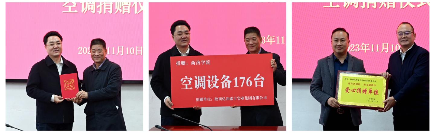 范新會代表全校師生對陜西億和盛豐實業集團有限公司的善行義舉表示感謝。他指出,黃鵬主席情系家鄉,心系我校,在疫情防控及學校發展的關鍵時刻,慷慨解囊,紓難解困,先后為我校捐贈了防疫物資、疫情防控隔離房、智慧校園設備等物資和設施,用實際行動關注、支持我校建設發展。本次為我校學生公寓捐贈空調設備,再一次體現了陜西億和盛豐實業集團有限公司對我校事業發展的持續關心與大力支持。學校將進一步加快改革發展步伐,扎實履行服務社會使命,為商洛經濟社會發展提供人才保障和智力支撐。