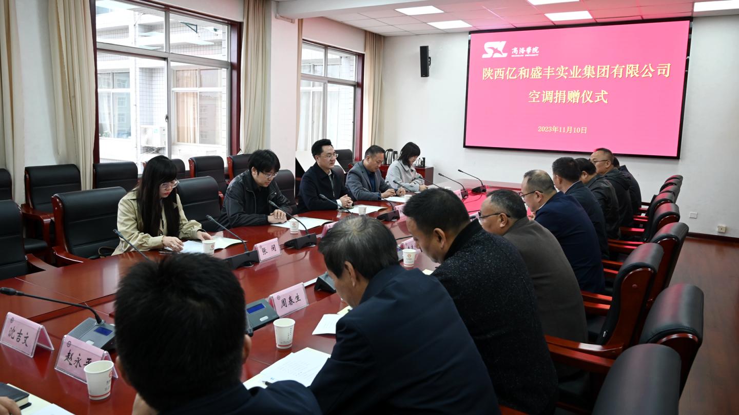 為進一步改善學校辦學條件,經友好協商,陜西億和盛豐實業集團有限公司向我校丹江校區學生公寓樓C棟捐贈價值60余萬元的176臺空調設備。11月10日,我校舉辦空調設備捐贈儀式。陜西億和盛豐實業集團有限公司董事局主席黃鵬、董事長黃濤出席捐贈儀式。校長范新會代表學校接受捐贈并向陜西億和盛豐實業集團有限公司頒發捐贈證書。副校長郭瑾主持捐贈儀式并向企業頒發捐贈牌匾。