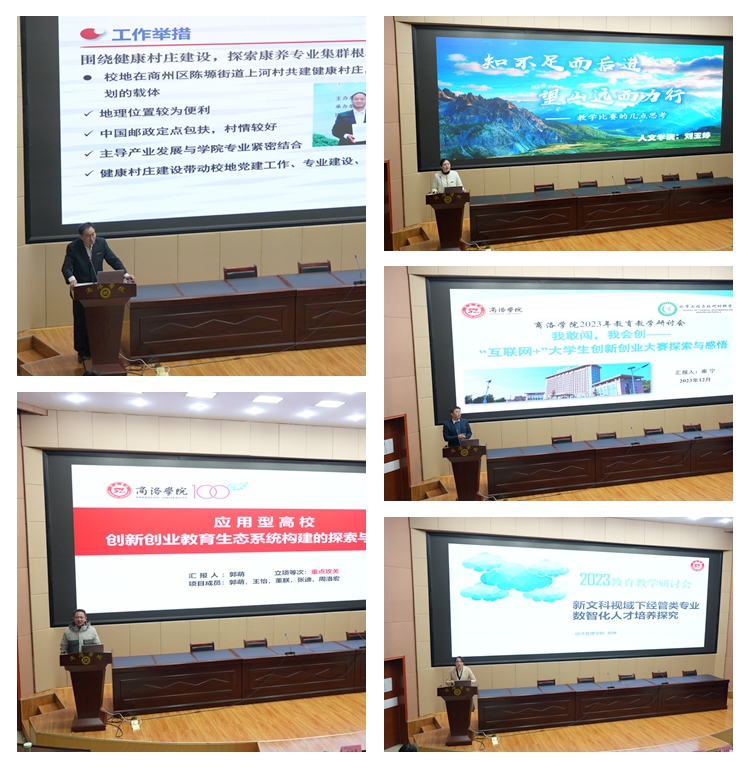健康管理學(xué)院院長(zhǎng)郭耀東、人事處副處長(zhǎng)郭萌、人文學(xué)院教師劉玉婷、化材學(xué)院教師南寧、經(jīng)管學(xué)院教師房琳分別圍繞“深化教育評(píng)價(jià)改革,推進(jìn)特色內(nèi)涵發(fā)展”會(huì)議主題,從根植地方、教改項(xiàng)目、教學(xué)比賽、創(chuàng)新創(chuàng)業(yè)、年會(huì)論文等方面作了交流發(fā)言。