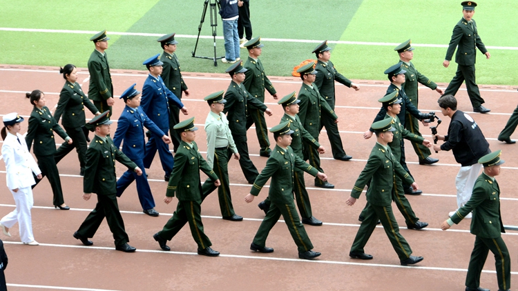 伴隨著激揚的《運動員進行曲》,國旗護衛隊、退役士兵方陣、彩旗方陣、花環方陣、裁判隊、各二級學院師生代表隊、附屬小學、附屬幼兒園和教職工代表組成的18個方陣邁著整齊穩重、鏗鏘有力的步伐依次走過主席臺,展現了我校師生昂揚向上的精神風貌。運動員代表楊振興、裁判員代表王蒙潔分別向大會宣誓。