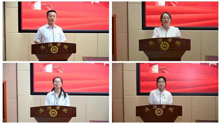 優(yōu)秀基層黨組織代表、經(jīng)管學(xué)院黨委書記高擴昌,優(yōu)秀黨務(wù)工作者代表、電信學(xué)院學(xué)工辦主任陳倩,優(yōu)秀教工黨員代表、建工學(xué)院教師曹琛,優(yōu)秀學(xué)生黨員代表、健康管理學(xué)院護理2221班學(xué)生申愛霞分別作了交流發(fā)言。