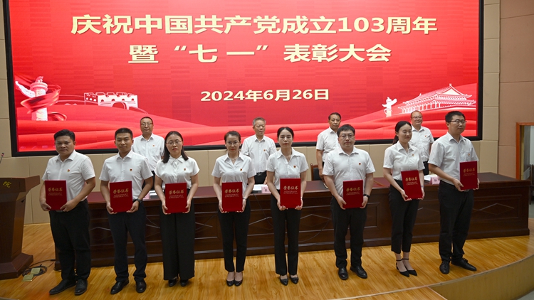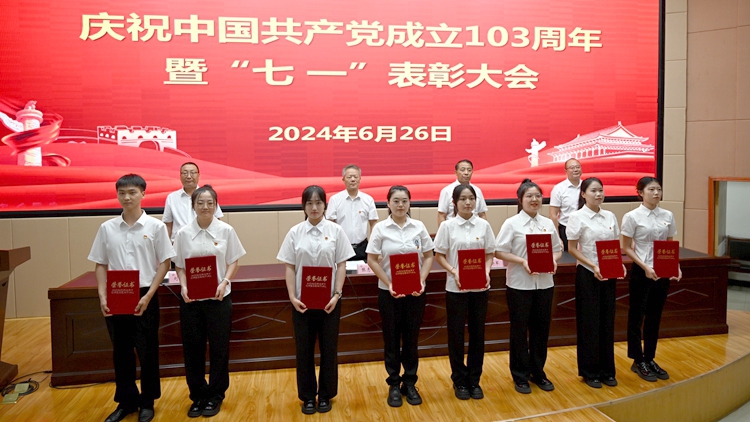 6月26日下午,我校在圖書館二樓報告廳召開慶祝中國共產(chǎn)黨成立103周年暨“七一”表彰大會。校黨委書記張志昌出席大會并講話。大會對36名優(yōu)秀共產(chǎn)黨員、15名優(yōu)秀黨務(wù)工作者、3個先進基層黨委和13個先進黨支部進行表彰。黨委委員、副校長劉寶盈、王新軍、郭瑾出席大會并向受表彰集體和個人代表頒發(fā)獎牌證書。大會由劉寶盈主持。