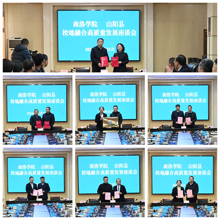 為進一步深化政產學研深度融合、政校企地合作發展,實現科學研究和服務地方水平持續快速提升,12月31日,商洛學院與山陽縣共同舉辦校地融合高質量發展簽約儀式。商洛學院校長權雅寧、副校長王新軍,山陽縣縣長李凌云,副縣長陳宏波,縣委常委、統戰部部長樂席波出席簽約儀式。山陽縣縣委常委、組織部部長伍淑軍主持簽約儀式。