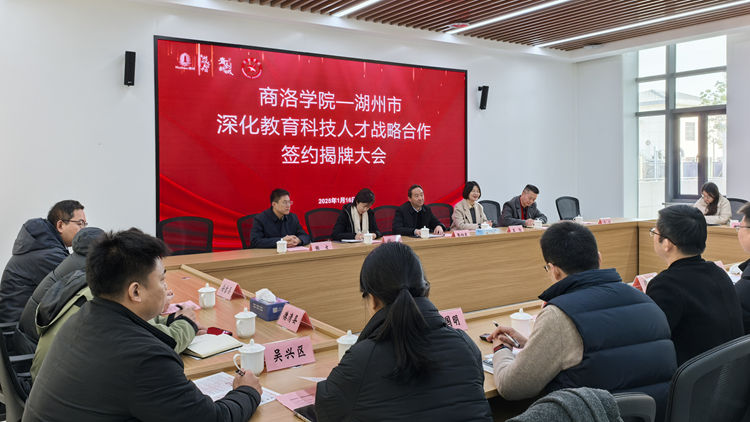 會上,朱新江對張向東一行表示熱烈歡迎,并對我校積極支持湖州經濟社會發展、支持就業人才戰略表示衷心感謝。朱新江以“精致”“厚重”“充滿張力”“承載使命”四個關鍵詞為題對湖州市市情和近年來招才引智的基本情況進行了簡要介紹,他回顧了湖州市與我校近年來在人才輸送與智力投送方面取得的成果。朱新江表示,湖州市人社系統將以此次揭牌儀式為契機,在人才招引、政策支持、產教融合等方面給予商洛學院全力支持,為湖州經濟社會和學校教育教學高質量發展提供“新動能”。