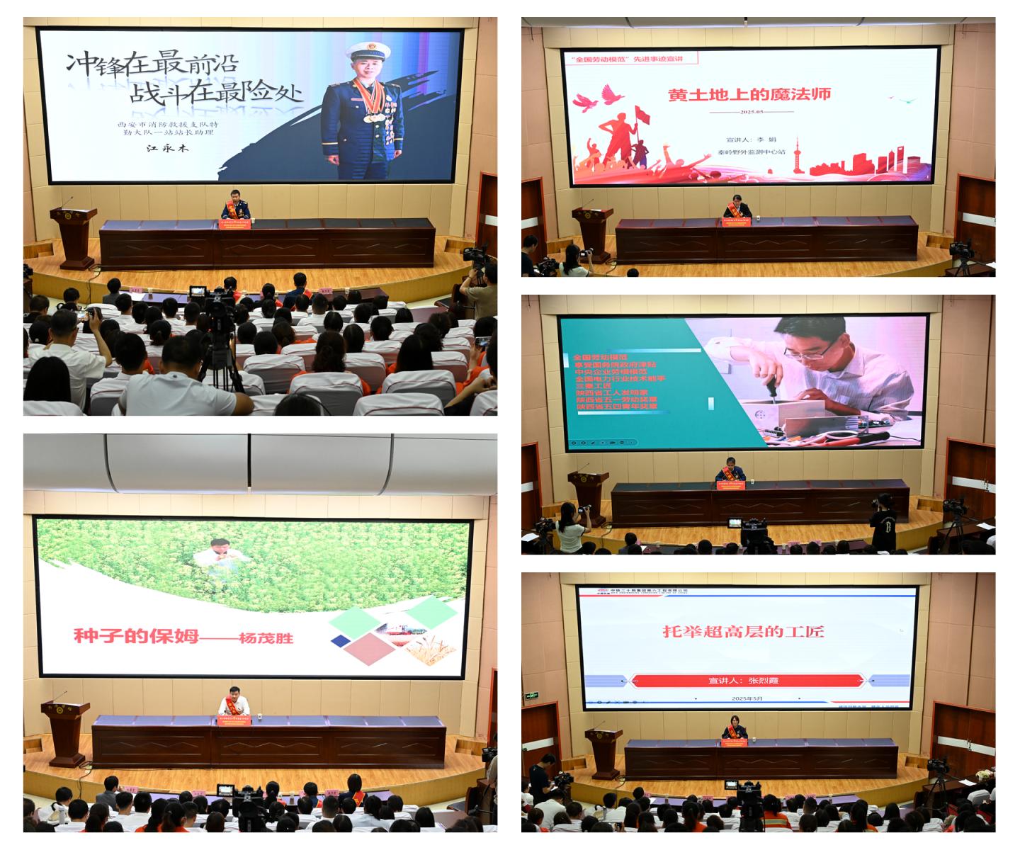 商州區和市直部分單位一線職工、農民工、新業態人員代表,商洛學院相關職能部門負責人、師生代表共400余人共同聆聽勞模故事,汲取奮進力量。