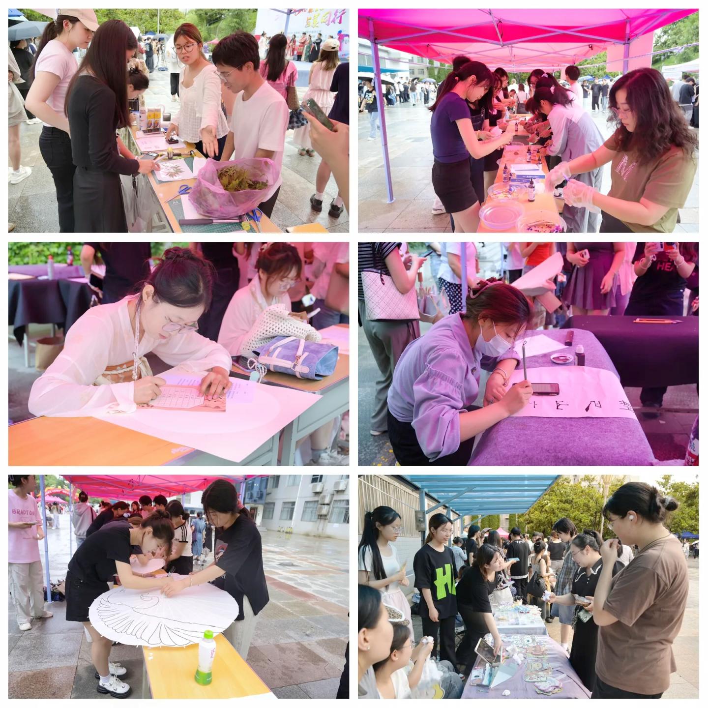 在游園活動中,師生沉浸式參與“霓裳·重光”古裝造型賽、“詩海競帆”詩詞擂臺賽、“筆競風華”書法擂臺賽、“指尖生花”創意彩繪、“藝展芳華”美育趣味體驗、“藝心雅趣”文創市集、“鏡觀萬象”校園影像大賽、油畫寫生展、中國畫寫生展等體驗項目,各種活動奇妙交融,游園現場人潮如織、氣氛熱烈。