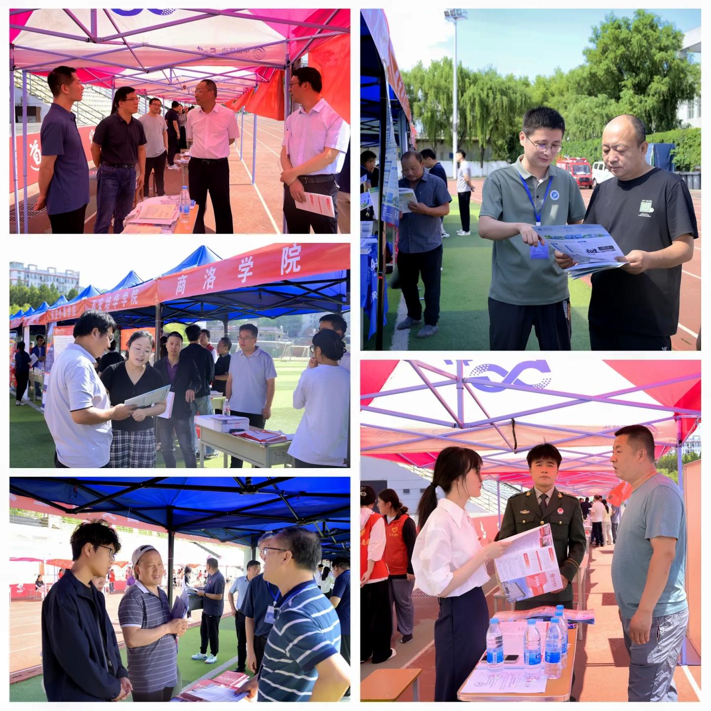 此外,6月26日,組委會還在全省7個地市同期舉辦了教博會地市巡展暨“陜西高校校園開放日”系列公益活動,與西安主會場遙相呼應,服務考生和家長咨詢。其中,商洛專場活動在我校北新街校區體育場舉辦,由我校具體承辦。省內28所高校及我校10個二級學院、學生處、國際合作交流處分別在體育場設立咨詢處,展現學校優勢特色,提供咨詢服務。活動吸引了300余名高考考生及家長前來了解心儀院校的最新招生政策、專業設置、人才培養等方面信息。校黨委副書記劉寶盈到場參觀了解各展位情況并指導工作。