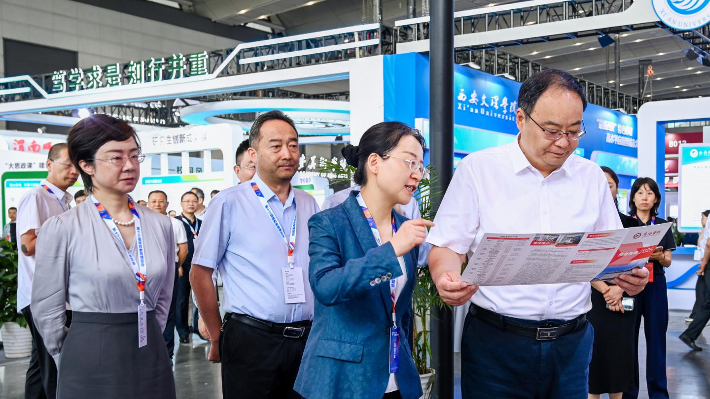 陜西省委教育工委書記、陜西省教育廳廳長王樹聲蒞臨我校展位參觀指導,詳細了解我校近年來聚焦人工智能技術創新、秦嶺生態環境保護、生物資源開發利用、食品加工產業轉化等方面的科研成果。