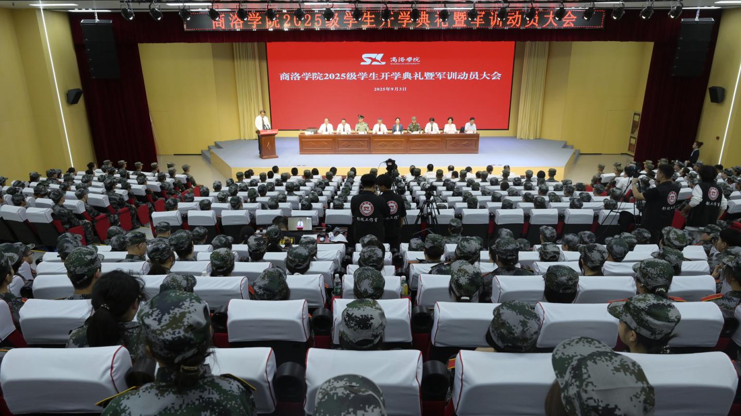 9月3日下午,商洛學院隆重舉行2025級新生開學典禮暨軍訓動員大會。大會采取線下主會場與線上分會場相結合的形式進行。全體校領導、商州區人民武裝部上校部長陳強出席大會。相關職能部門主要負責人、二級院部黨政負責人、軍訓教官、觀禮嘉賓及部分新生代表在北新街校區主會場參會,其余2025級新生及輔導員在各分會場以實況轉播的方式實時參會。