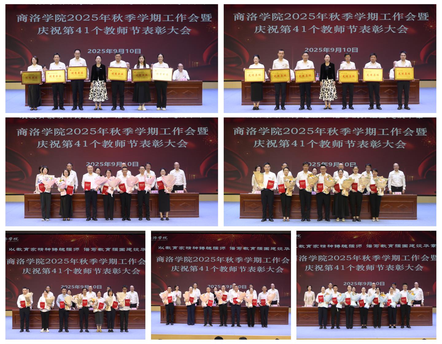 大會對學校2024年度目標責任考核優秀單位、2025年先進集體、2025年我最喜愛的老師、2025年優秀教師和優秀教育工作者、陜西省人才支持計劃項目教師代表、陜西省最美教師,以及一年來在教學、科研、學生工作中有突出貢獻的教師進行了表彰。校領導為受表彰集體和個人頒發獎牌和榮譽證書,學生代表上臺為獲獎教師獻花。與會師生用最熱烈的掌聲向獲獎者們表示由衷的祝賀。