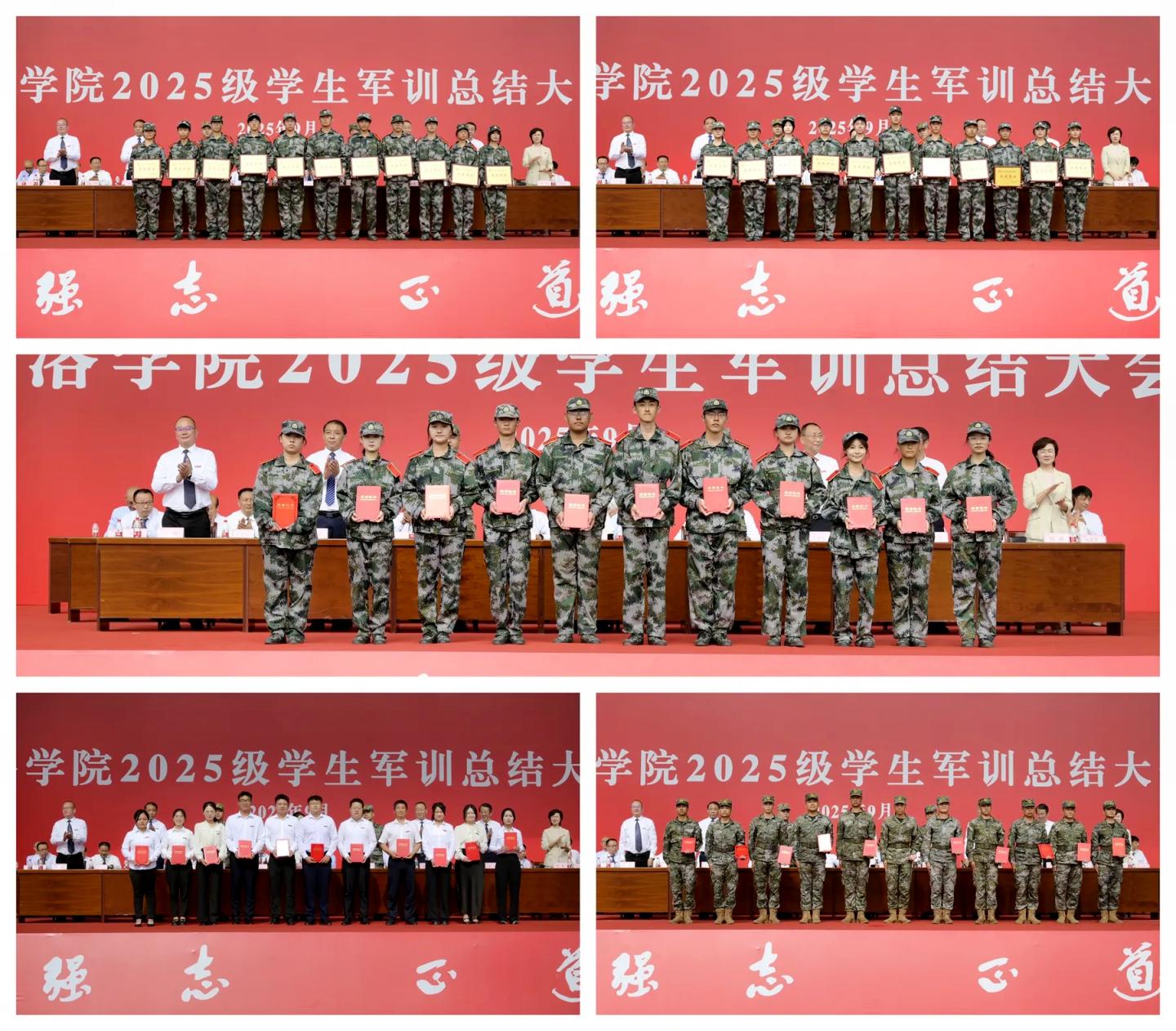 與會領導分別為軍事技能訓練先進集體、軍訓內務整理先進集體、軍訓工作優秀教官、軍訓工作先進個人、軍訓優勝標兵代表頒發了獎牌和榮譽證書。