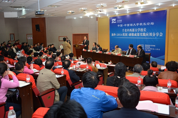 10月31-11月1日,“中國?中西部大學(xué)校長論壇——千名中西部大學(xué)校長海外(2014英國)研修成果實(shí)踐應(yīng)用分享會”在我校隆重召開。來自全國17個省市22所中西部大學(xué)的40余位書記、校長、專家齊聚我校,共同探討交流應(yīng)用型本科院校建設(shè)等有關(guān)問題。教育部港澳臺辦常務(wù)副主任趙靈山、國家教育行政學(xué)院涉外培訓(xùn)部主任樊平軍、陜西省委高教工委常務(wù)副書記董小龍,商洛市委常委、副市長武文罡出席會議。