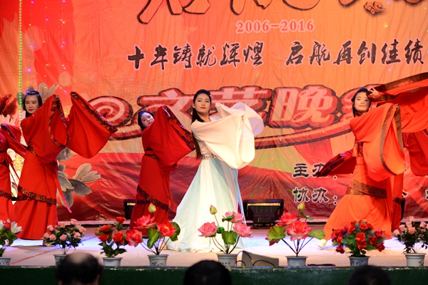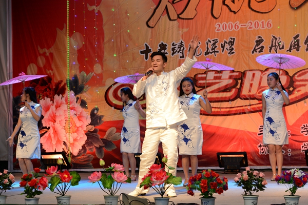 當晚的大學(xué)生活動中心四處洋溢著歡樂的節(jié)日氣氛。晚會在民樂《春節(jié)序曲》的精彩表演中拉開序幕。整場晚會形式多樣,精彩紛呈。歌舞、相聲、小品、魔術(shù)、朗誦等18個形式多樣、精彩紛呈的節(jié)目贏得了臺下觀眾們的陣陣喝彩。歌伴舞《秦嶺最美是商洛》,用優(yōu)美的歌聲和優(yōu)雅的舞蹈向大家展現(xiàn)了商洛美麗的地域風(fēng)情;漢服社的同學(xué)邁著輕快靈動、曼妙翩躚的舞步,用一支舞蹈《相和歌》讓大家體會到了中華民族傳統(tǒng)文化的獨特魅力;魔術(shù)表演《閃耀奇跡》讓大家讓大家感受到了魔術(shù)的千變?nèi)f化,贏得了觀眾的陣陣掌聲;被同學(xué)們冠以“樓姨”昵稱的宿舍管理員用一場《大時代》的舞蹈將晚會氣氛的推向高潮;文傳學(xué)院教師張曉倩創(chuàng)作的詩歌《十年》以詩朗誦的形式描繪了出我校升本十年來的發(fā)展,讓師生們回顧了商洛學(xué)院十年來的變化與發(fā)展;晚會在一曲男女二重唱《走向復(fù)興》中完美落幕。