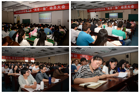 劉建林在講話中從“凝聚共識,深刻領(lǐng)會‘兩學(xué)一做’學(xué)習(xí)教育的重大意義;聚焦主要內(nèi)容,扎實(shí)推進(jìn)‘兩學(xué)一做’學(xué)習(xí)教育;嚴(yán)抓落實(shí),確保‘兩學(xué)一做’學(xué)習(xí)教育取得實(shí)效”三個(gè)方面全面闡釋了“兩學(xué)一做”學(xué)習(xí)教育的重大意義、目標(biāo)任務(wù)和主要內(nèi)容,對我校黨員師生開展“兩學(xué)一做”提出了具體要求。他指出,在全體黨員中開展“學(xué)黨章黨規(guī)、學(xué)系列講話,做合格黨員”學(xué)習(xí)教育,是繼黨的群眾路線教育實(shí)踐活動、“三嚴(yán)三實(shí)”專題教育之后,深化黨內(nèi)教育的又一次重要實(shí)踐,也是面向全體黨員從集中性教育活動向經(jīng)常性教育延伸的重要舉措。在學(xué)校構(gòu)建“穩(wěn)基、提質(zhì)、增速,創(chuàng)新驅(qū)動發(fā)展”的新常態(tài),全面實(shí)施本科教育的關(guān)鍵時(shí)期開展“兩學(xué)一做”學(xué)習(xí)教育至關(guān)重要,目的就是加強(qiáng)黨的建設(shè),要求全體黨員以學(xué)促做、知行合一,成為講政治、有信念,講規(guī)矩、有紀(jì)律,講道德、有品行,講奉獻(xiàn)、有作為的合格黨員,在實(shí)現(xiàn)個(gè)人價(jià)值的同時(shí)為學(xué)校發(fā)展做出貢獻(xiàn)。