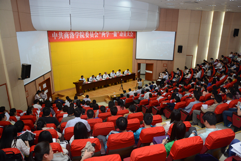 黨委副書記、副校長范新會主持大會。黨委副書記彭虎軍宣讀了《中共商洛學(xué)院委員會關(guān)于印發(fā)<在全校黨員中開展“學(xué)黨章黨規(guī)、學(xué)系列講話、做合格黨員”學(xué)習(xí)教育實(shí)施方案>的通知》。