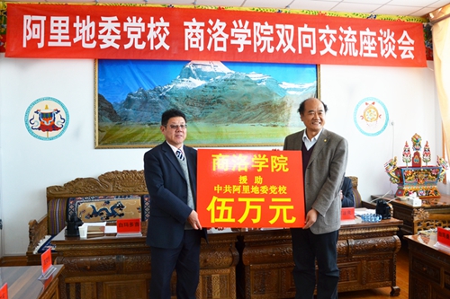 劉建林代表學(xué)校一萬(wàn)余名師生向阿里地委、行署及阿里黨校對(duì)蔣正治的關(guān)心支持表示感謝,歡迎黨校領(lǐng)導(dǎo)、教職工到商洛學(xué)院考察交流。劉建林表示,開(kāi)展援藏工作是學(xué)校響應(yīng)省委省政府決策部署的具體行動(dòng),是義不容辭的社會(huì)義務(wù),責(zé)任重大,使命光榮。我們珍惜通過(guò)援藏工作架起的兩校友誼,希望兩校密切聯(lián)系、加強(qiáng)溝通,在師資培養(yǎng)、學(xué)員培訓(xùn)、學(xué)科專(zhuān)業(yè)建設(shè)、科學(xué)研究等領(lǐng)域進(jìn)行交流與合作。