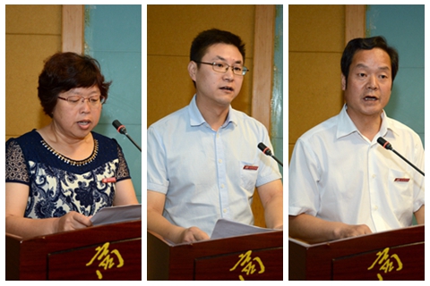 經管學院黨總支書記魯綿茸、學生處黨員張文、數計學院輔導員黃潔分別代表先進基層黨組織、優秀共產黨員和優秀黨務工作者做了發言。