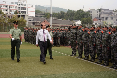 9月18日下午,我校隆重舉辦2016級學生軍訓會操暨總結大會,檢閱2016級學生軍訓成果,對軍訓中涌現出的先進集體和個人進行表彰。校領導劉建林、范新會、王思懷、魏書堂、彭虎軍、劉寶盈,商洛軍分區參謀長李水龍大校,中國人民解放軍第47集團軍某部機步營營長、我校2016級學生軍訓團團長馬防少校出席大會并為先進集體和個人頒獎。各二級學院黨政負責人,各職能部門負責人,全體2016級學生及輔導員參加了大會。大會由黨委副書記、副校長范新會主持。
