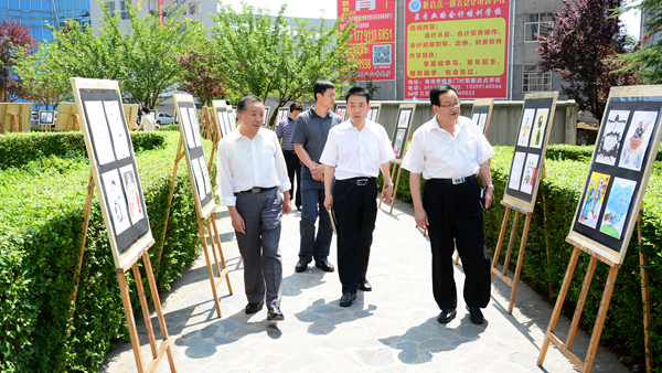 為喜迎建黨96周年,推進“兩學一做”學習教育常態化制度化,營造風清氣正的校園育人環境,6月22日,我校迎“七一”廉潔文化作品展在一號教學樓前展出。中國科學院院士、我校“雙聘院士”趙鵬大教授,陜西省學位委員會秘書長袁寧,校領導龍治剛、范新會、王思懷、魏書堂、彭虎軍、劉勇與師生一同參觀了展覽。