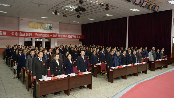 報(bào)告號(hào)召全體黨員和師生員工緊密團(tuán)結(jié)起來,高舉中國特色社會(huì)主義偉大旗幟,以習(xí)近平新時(shí)代中國特色社會(huì)主義思想為指引,在省委省政府的堅(jiān)強(qiáng)領(lǐng)導(dǎo)下,在市委市政府的大力支持下,堅(jiān)定信心不動(dòng)搖,咬定目標(biāo)不放松,始終保持昂揚(yáng)向上的斗志、務(wù)實(shí)奮進(jìn)的作風(fēng),開拓進(jìn)取、攻堅(jiān)克難,為把我校早日建成一流應(yīng)用型本科院校不懈奮斗!