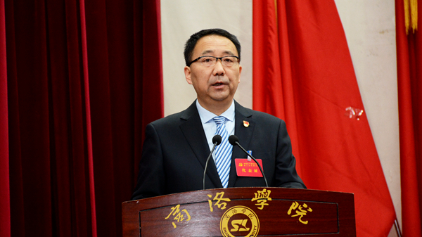 龍治剛代表中國共產(chǎn)黨商洛學(xué)院第一屆委員會(huì)向大會(huì)作了題為《聚焦內(nèi)涵發(fā)展 矢志追趕超越 為加快建設(shè)一流應(yīng)用型本科院校不懈奮斗》的工作報(bào)告。大會(huì)由范新會(huì)主持。