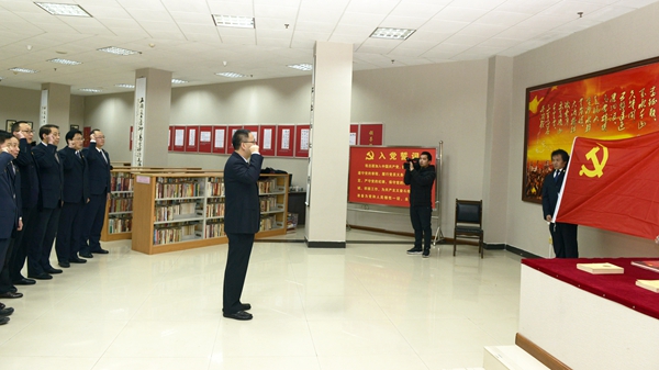 1月15日上午8時,中國共產黨商洛學院第二屆委員會委員龍治剛、范新會、王思懷、彭虎軍、劉寶盈、劉勇、王新軍、李超、楊存典、張向東、郭瑾,一起來到位于學校圖書館的商洛紅色文化資料館展廳,集體重溫入黨誓詞。在黨委書記龍治剛領誓下,黨委委員們舉起右拳,面對黨旗莊嚴宣誓。