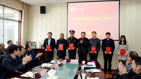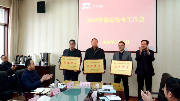 黨委書記龍治剛傳達了全省高校穩(wěn)定安全工作會議精神,與職能部門及院部負責(zé)人代表簽訂了2018年穩(wěn)定安全工作責(zé)任書。紀委書記王思懷傳達了全省高校全面從嚴治黨工作會議精神。副校長魏書堂為先進集體及個人代表頒獎。