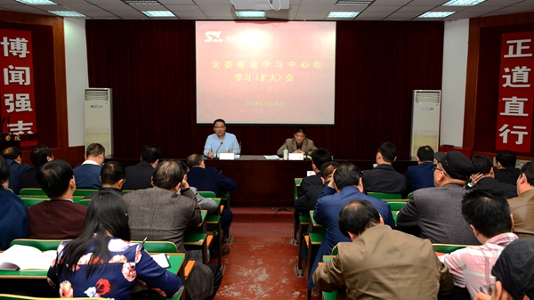 3月26日,校黨委理論學(xué)習(xí)中心組召開(擴(kuò)大)會議,傳達(dá)學(xué)習(xí)貫徹2018年全國兩會精神。黨委書記龍治剛主持會議并傳達(dá)了十三屆人大一次會議精神,黨委副書記、校長范新會傳達(dá)了全國政協(xié)十三屆一次會議精神。校領(lǐng)導(dǎo)、黨委中心組成員及全校處科級干部參加會議。