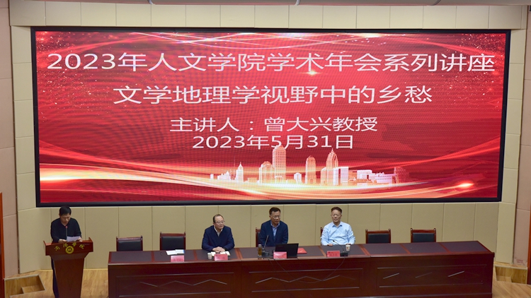 5月31日下午,中國文學地理學會會長、廣州大學文學地理學研究院名譽院長曾大興教授應邀來我校作學術報告,并受聘為我校兼職教授。校黨委書記張志昌出席報告會并講話。副校長郭瑾代表學校向曾大興教授頒發聘書。商洛市作協、評協成員代表,人文學院黨政負責人及師生代表共300余人聽取報告。