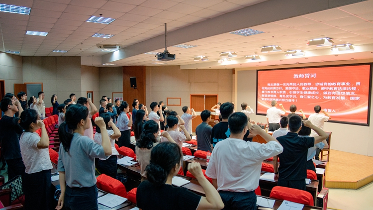 學校學科辦公室、督導與評估中心、教務處、科技處、社科處、學生處、人事處等部門負責人解讀了學科建設、專業認證、教學規范、科研管理、學生管理及人事管理等方面政策。在專題輔導環節,我校喬成芳教授、程國教授、劉玉婷老師、郭耀東博士分別圍繞平臺托舉、團隊帶動、賽事助推、根植地方等方面為新入職教師作專題輔導。在認家聯誼活動環節,校工會組織開展了教師成長團體心理沙龍、節目表演、教唱校歌等相關活動。參訓教職工還學習了新時代高校教師職業行為準則、簽訂師德師風承諾書、開展入職宣誓,并集體參觀了北新街校區和丹江校區,進一步熟悉了校園環境布局。