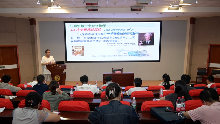 此次培訓主要圍繞“專家講座”“參觀校園”“政策解讀”“專題輔導”“認家活動”等模塊進行。學校客座教授高勝利以《我對做一個合格高校教師的理解》為題,結合自身教學、科研經歷分享了如何做合格教師,并勉勵新進教職工要樂于奉獻,相信在商洛學院必將大有作為。