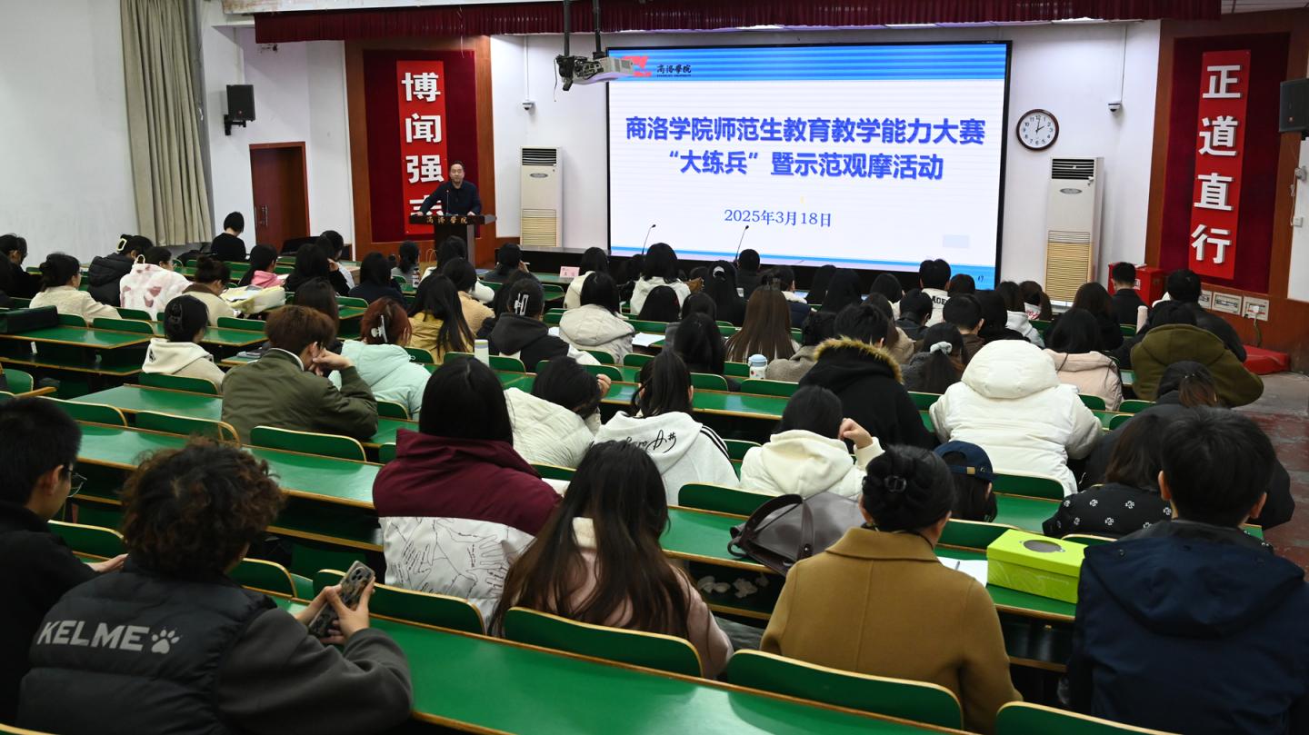 為全面提升師范生教育教學能力,全力做好陜西高等學校師范生教育教學能力大賽備賽工作,推動師范專業人才培養質量,3月18日,我校舉辦師范生教育教學能力大賽“大練兵”暨示范觀摩活動。副校長張向東出席活動并作動員講話。教務處負責人、相關師范專業教學院長、省級決賽入圍選手及指導教師、各師范專業學生代表共130余人參加了活動。活動由教務處處長王怡主持。