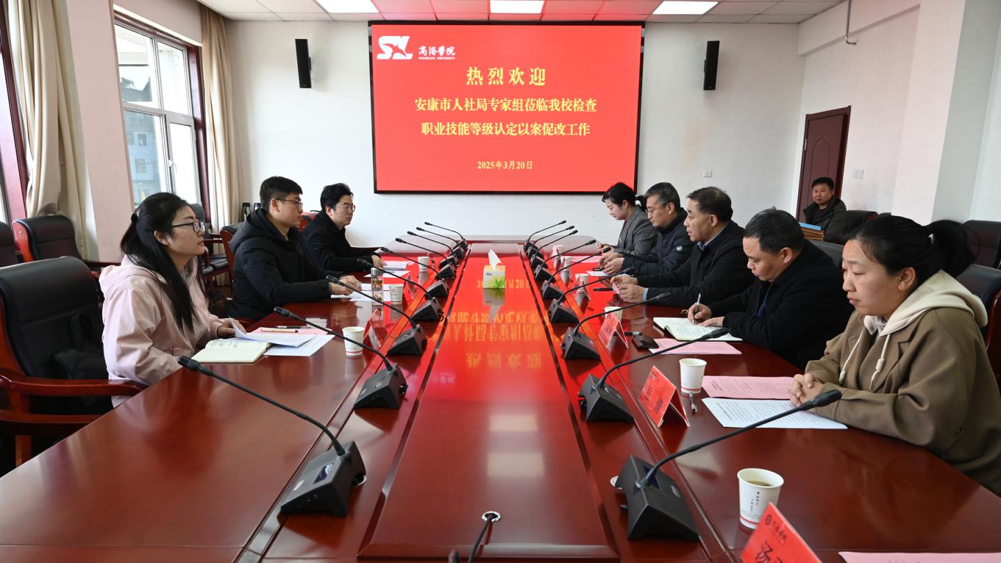 3月20日上午,安康市人社局專家組來校對繼續教育學院職業技能等級認定以案促改工作進行專項交叉檢查。商洛市職業技能鑒定指導中心相關負責人、副校長王新軍陪同檢查。