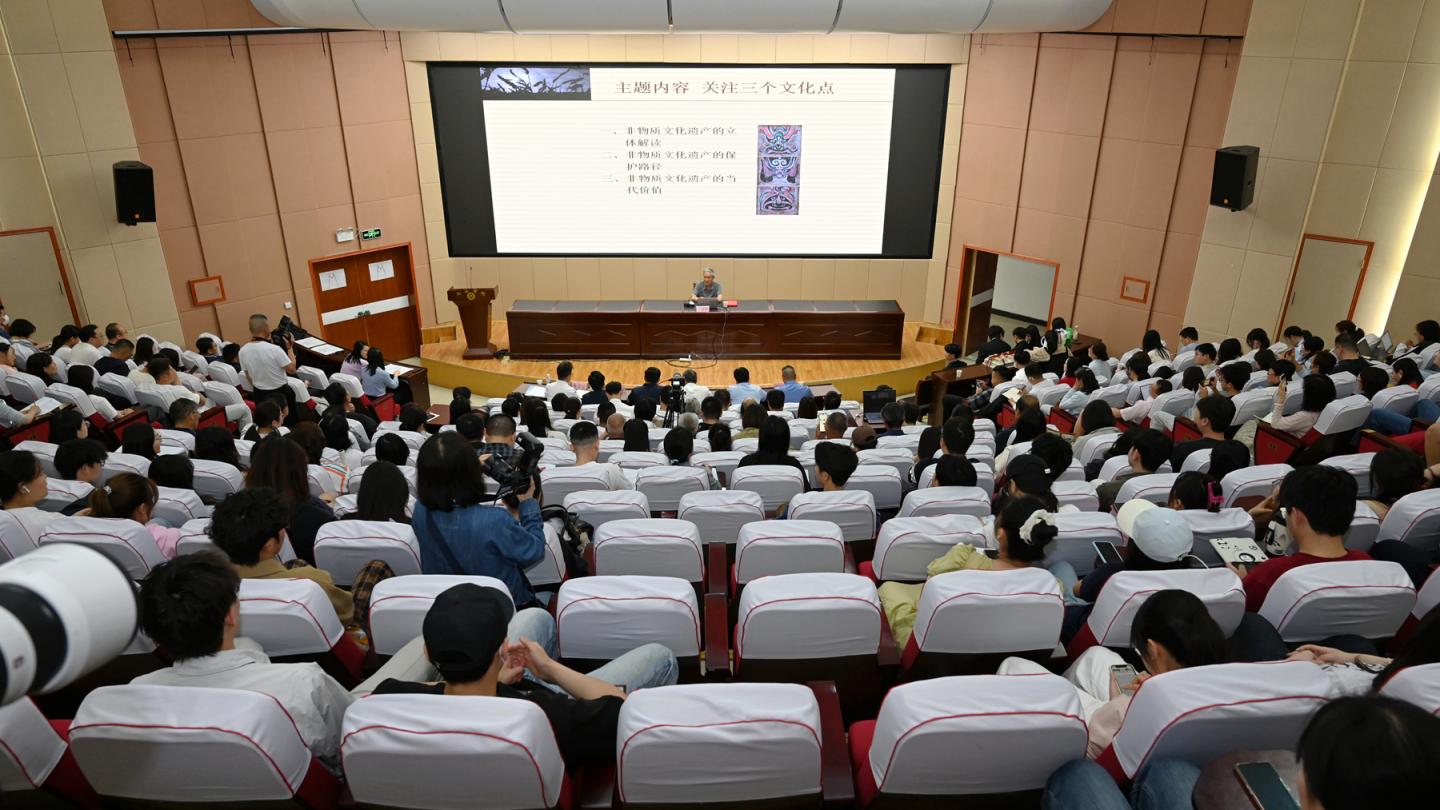 修建橋教授以“傳承與弘揚(yáng)——非物質(zhì)文化遺產(chǎn)的當(dāng)代價(jià)值與創(chuàng)新應(yīng)用路徑”為題,在報(bào)告中系統(tǒng)剖析了非遺活態(tài)傳承現(xiàn)狀,以鳳翔木版年畫、商洛花鼓等陜西非遺為例,解碼文化基因?qū)Φ赜蛘J(rèn)同的塑造作用,深入分析非物質(zhì)文化遺產(chǎn)的當(dāng)代價(jià)值,闡釋了非遺IP與文旅品牌融合的產(chǎn)業(yè)化潛力。他指出,高校應(yīng)當(dāng)積極助力國家文化復(fù)興戰(zhàn)略,探索構(gòu)建“教育-研究-實(shí)踐”三維生態(tài)體系,通過虛擬現(xiàn)實(shí)活化非遺場景,依托科研項(xiàng)目提升非遺研究闡釋的理論話語權(quán)。修建橋教授還向我校圖書館捐贈(zèng)了圖書,并圍繞“高校非遺課程設(shè)計(jì)”“數(shù)字技術(shù)在傳統(tǒng)手工藝中的應(yīng)用邊界”等問題與師生展開討論,現(xiàn)場氣氛熱烈。