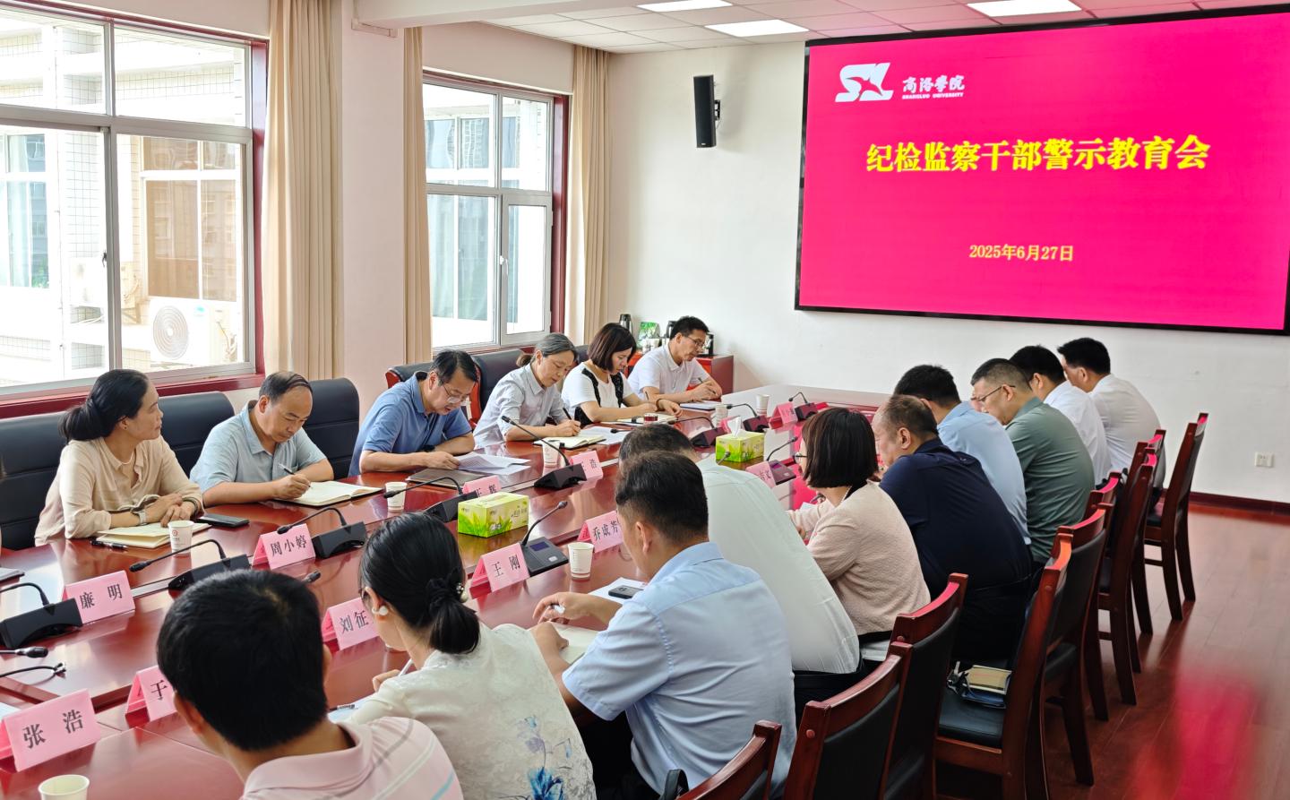 為持續推動深入貫徹中央八項規定精神學習教育,深化落實“紀檢監察工作規范化法治化正規化建設年”行動,6月27日下午,我校召開紀檢監察干部警示教育會,深學細悟習近平總書記關于加強黨的作風建設的重要論述和中央八項規定及其實施細則精神,深刻汲取典型案例教訓,教育引導紀檢監察干部知敬畏、存戒懼、守底線。黨委副書記、紀委書記王浩主持會議并講授專題黨課。校紀委委員,二級黨組織紀委書記、紀檢委員以及專職紀檢監察干部參加會議。