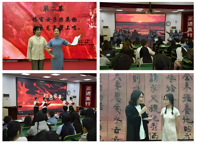 藝術(shù)學(xué)院團(tuán)員青年以舞臺劇形式演繹了革命夫妻陳覺和趙云霄血淚遺書感天動地的故事、女革命家秋瑾追求自由與變革的傳奇人生、冷云等抗聯(lián)女戰(zhàn)士挽臂涉入烏斯渾河的壯烈場景,深情誦讀趙一曼就義前寫給兒子的絕筆信,通過沉浸式的場景展示,穿越時空和革命先輩進(jìn)行歷史對話,深刻感悟黨在千錘百煉中凝聚形成的精神力量。