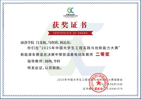 近日,中國大學生工程實踐與創新能力大賽組委會及陜西省教育廳陸續公布了中國大學生工程實踐與創新能力大賽全國總決賽、陜西賽區獲獎名單。我校學子榮獲全國二等獎1項,省級一等獎1項、二等獎2項、三等獎3項,獲獎等級和數量均創歷史新高。