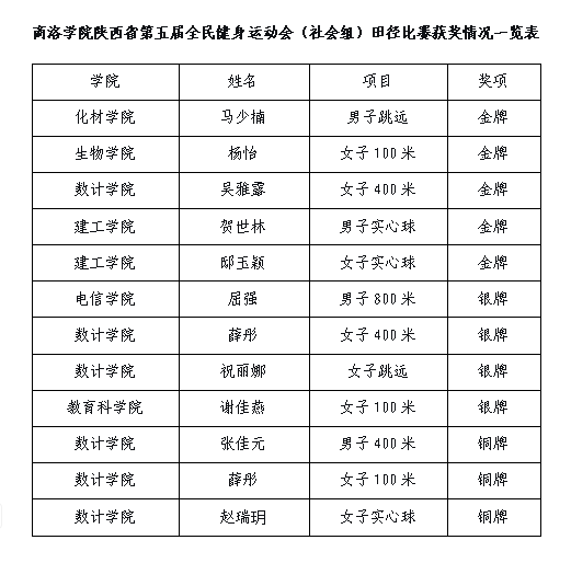 9月14日,陜西省第五屆全民健身運動會(社會組)田徑比賽在山陽縣落幕,在巔峰組比賽中,我校教師桑國鵬獲男子實心球第一名、王品獲男子跳遠第二名、閆蘇榮獲女子100米第二名,牛洋洋獲女子實心球第二名。比賽由體育教學(xué)研究部主任黃顯忠擔(dān)任領(lǐng)隊,王健、王品、桑國鵬擔(dān)任教練,帶領(lǐng)我校學(xué)生取得5項金獎、4項銀獎、3項銅獎的好成績,充分展現(xiàn)了學(xué)校體育育人的成果和學(xué)子們良好的精神風(fēng)貌。