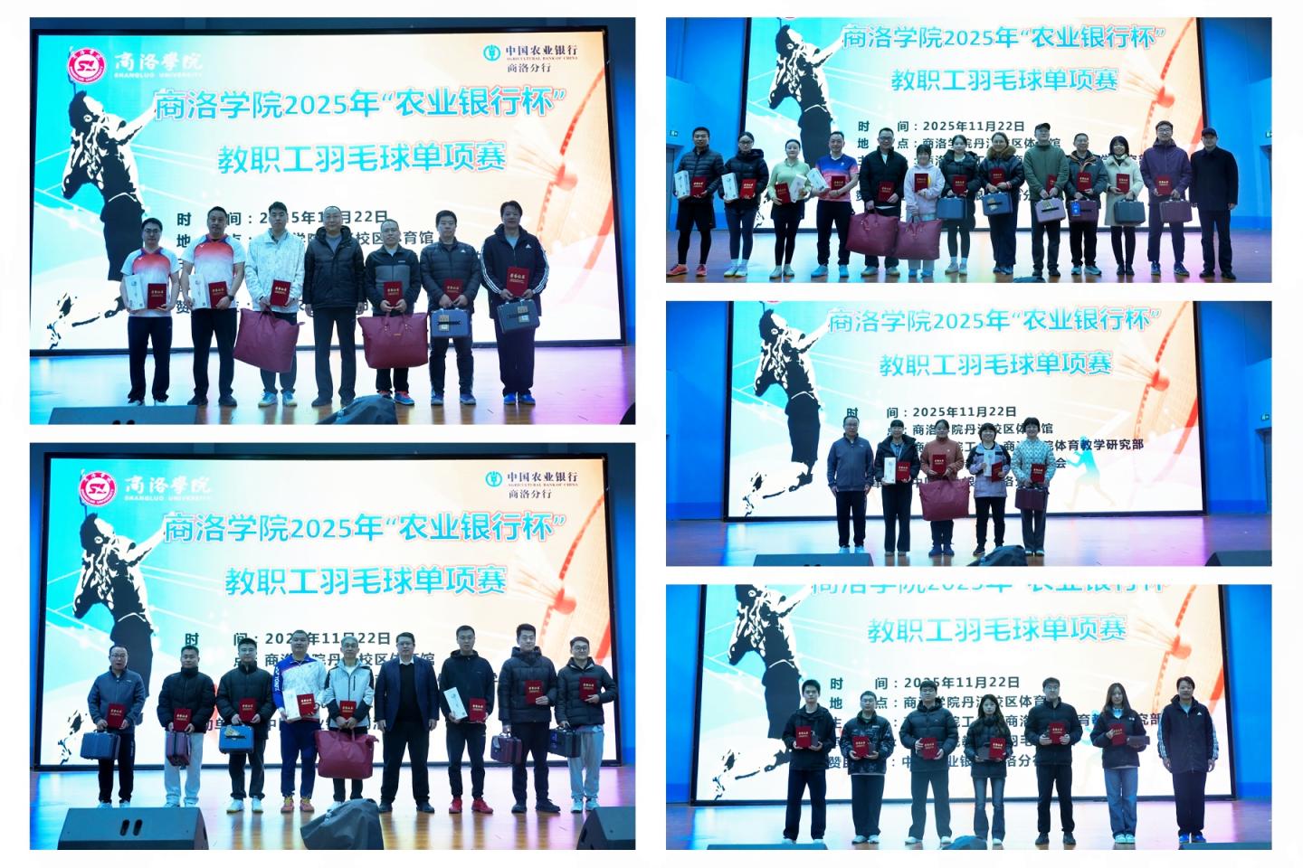 11月22日,由校工會、體育教學研究部聯合主辦,中國農業銀行商洛分行贊助協辦的2025年“農業銀行杯”教職工羽毛球單項賽在丹江校區體育館圓滿落幕。校黨委副書記劉寶盈,中國農業銀行商洛分行黨委副書記、副行長狄友青出席閉幕式并為獲獎選手頒獎。