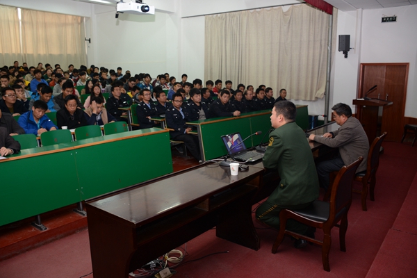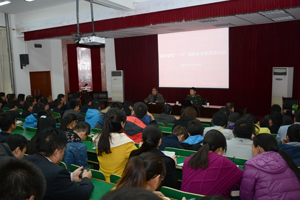 保衛處副處長房喜峰主持培訓會,校內各單位消防安全員、實驗員、消防控制室工作人員、機房管理員、公寓樓層服務員、食堂經理及安全管理人員、輔導員、2015級各班安全委員或班長、校衛隊員和學生護校隊員等230多人參加了培訓。