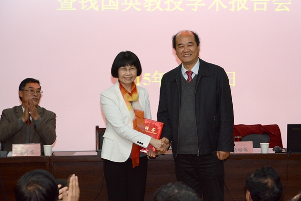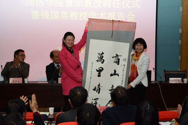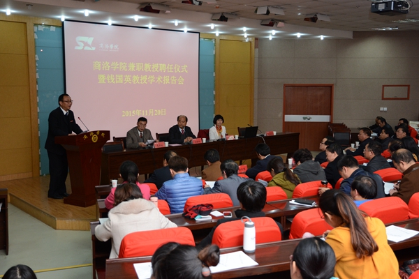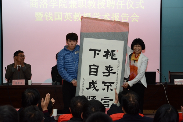 劉建林在聘任儀式上回顧了錢國英教授與我校的深厚情誼和對我校的熱情幫助,介紹了錢國英教授在高等教育教學研究方面的杰出成就。他說,商洛學院發展到今天,已經完全融入到了本科教育的行列,正在以“穩基、提質、增速”,創新驅動發展的新常態,確保學校在中國高等教育深化改革的洪流中不落伍、出成績。在這個過程中,賈平凹先生,侯洵、劉加平院士,教育部本科教學研究中心吳博主任、錢國英校長和西北大學高勝利教授等各界人士給予了我們巨大幫助與支持。我校師生員工要懂得感恩,牢記以錢國英教授為代表的專家學者對我們的幫助,把這些幫助轉化為工作動力,在各自崗位上為學校的創新發展做出自己應有的貢獻。