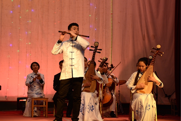 12月16日,由宣傳部、團委和學生處承辦的陜西文化惠民演出《大秦川》民族音樂會在大學生活動中心隆重舉辦。青年歌唱家、陜西民族樂團團長沙莎帶領樂團成員為我校觀眾們表演了《戰馬奔騰》等名歌名曲。校黨委書記、校長劉建林,紀委書記王思懷,副校長魏書堂和師生們一同觀看了演出。