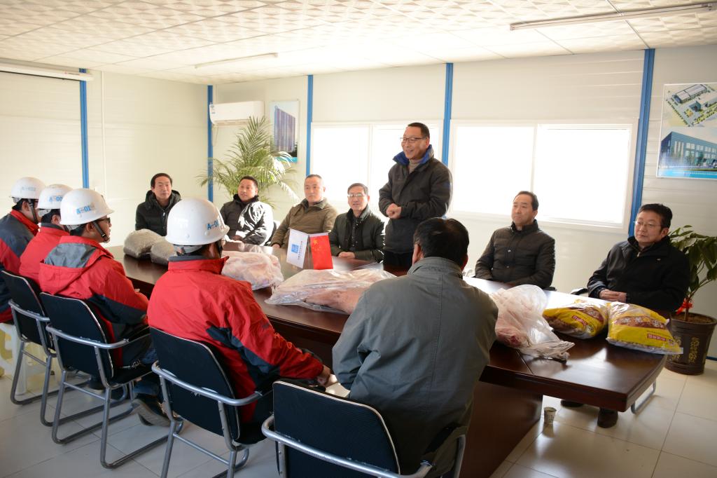漸近年關,天氣突變,氣溫驟降,四九寒天。2016年1月23日上午,副校長劉寶盈在學校黨政辦公室、基建處、監察處等部門負責人的陪同下,代表學校慰問了負責施工建設我校綜合教學樓項目的中國對外建設有限公司“商洛學院項目部”全體工作人員,并視察了工程建設情況。