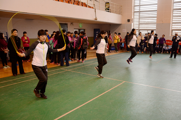 本次運動會以“建功十三五,巾幗展風(fēng)采”為主題,我校女教職工代表隊參加了跳小繩、障礙跑接力賽、夾投乒乓球穿梭接力賽和雙腳綁板賽全部4個項目的比賽。我校隊員在賽場上不屈不撓、奮力拼搏,充分體現(xiàn)了團隊協(xié)作的精神,展示了我校女教職工積極上進的精神風(fēng)貌。