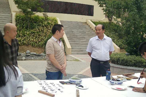 9月14日下午,藝術(shù)學(xué)院舉辦了以“迎國慶 慶中秋”為主題的書畫筆會。師生們在莘梓苑鋪開畫布,飽蘸濃墨,現(xiàn)場揮毫,共慶中秋佳節(jié)和祖國華誕的到來。黨委書記、校長劉建林現(xiàn)場觀看了師生創(chuàng)作的書畫作品。